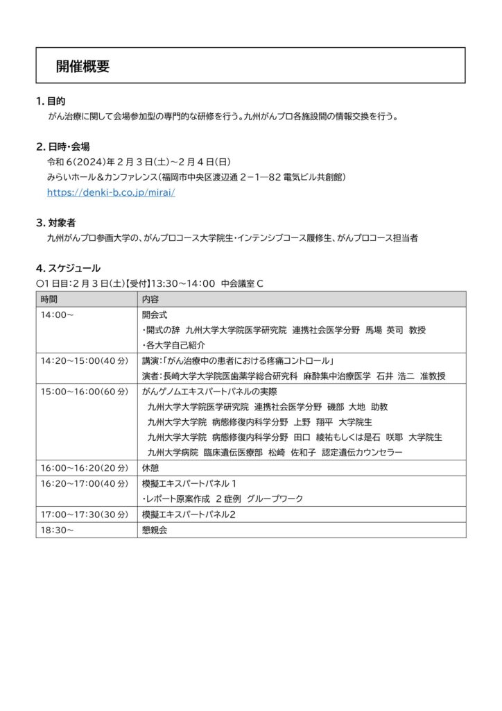 令和5年度「九州がんプロ全体研修会」(2月3日~4日開催)