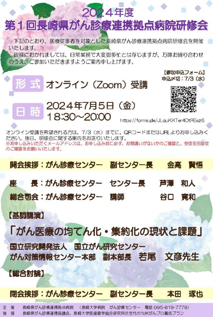 【長崎】第1回長崎県がん診療連携拠点病院研修会(7月5日開催)