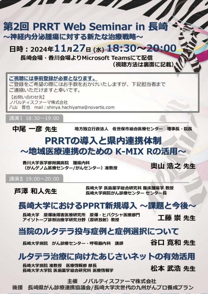 【長崎】第2回 PRRT Web Seminar in 長崎~神経内分泌腫瘍に対する新たな治療戦略~(11月27日開催)